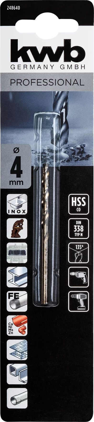 KWB PROFESSIONAL HSS-G CO TWIST METAL DRILL bliszteres fémfúrószár 4,0 mm 49248640